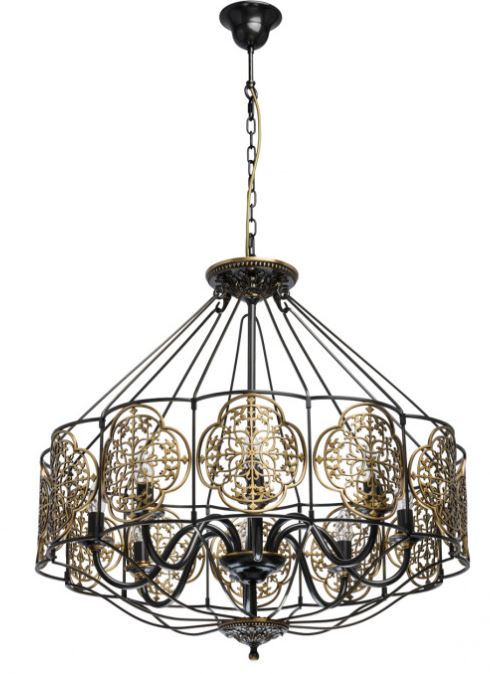 Светильник выполнен из латуни и обработан по технологии оксидирования (чернения) с последующей полировкой. Декор на плафоне и декоративные розетки выполнены по технологии художественного литья.