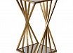 Трехмерный угловой акцентный стол с блестящей накладкой из сусального золота. Верхняя часть выполнена из прозрачного стекла, а основание имеет вставленное простое зеркало.